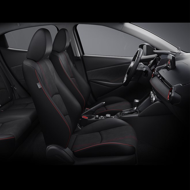 Chủ đề thiết kế không gian bên trong của Mazda2 là nghệ thuật thể hiện sự hài hoà của ánh sáng và bóng tối, cùng với chất lượng vật liệu để có thể tạo ra màu sắc phong phú và vẻ đẹp cho không gian.